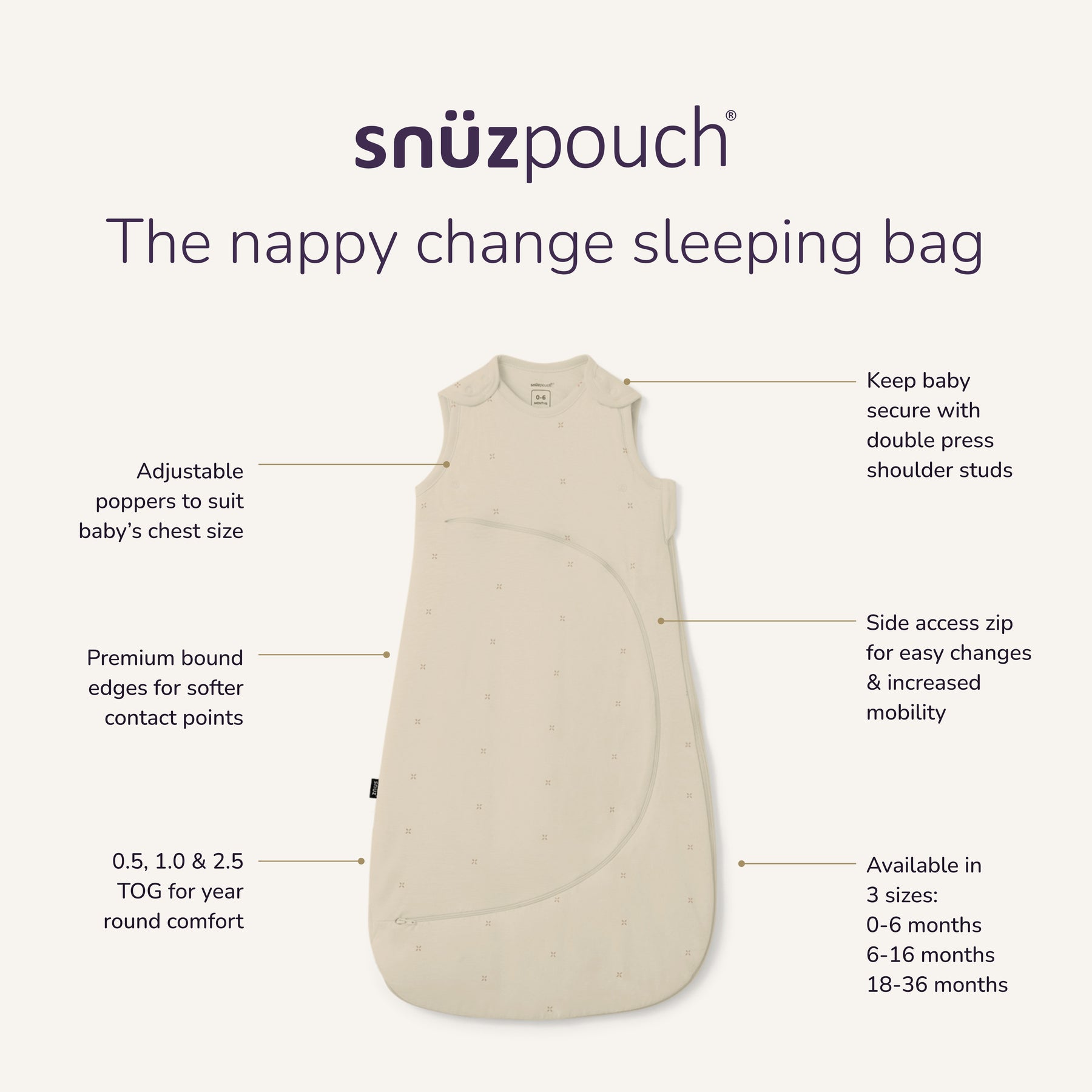 أهدئ طفلك الصغير في راحة مهدئة طوال الليل مع هذا كيس نوم ناعم للأطفال، يتميز بسحّاب ذكي لتغيير الحفاض بسرعة ودون إزعاج - حتى يبقى الطفل هادئًا ويعود الجميع إلى النوم بسرعة أكبر.