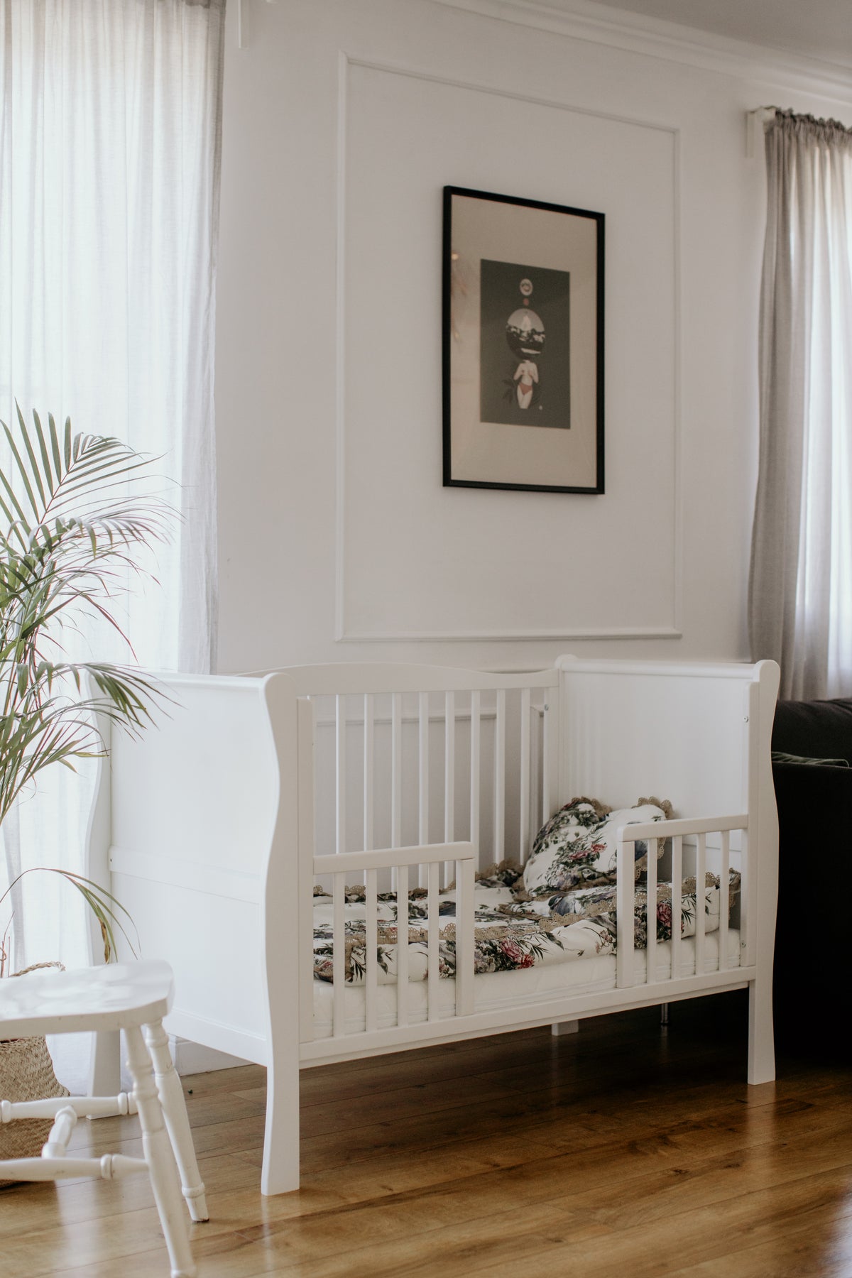 • سرير أطفال أبيض جميل ومتين يُرتقي بأي غرفة طفل