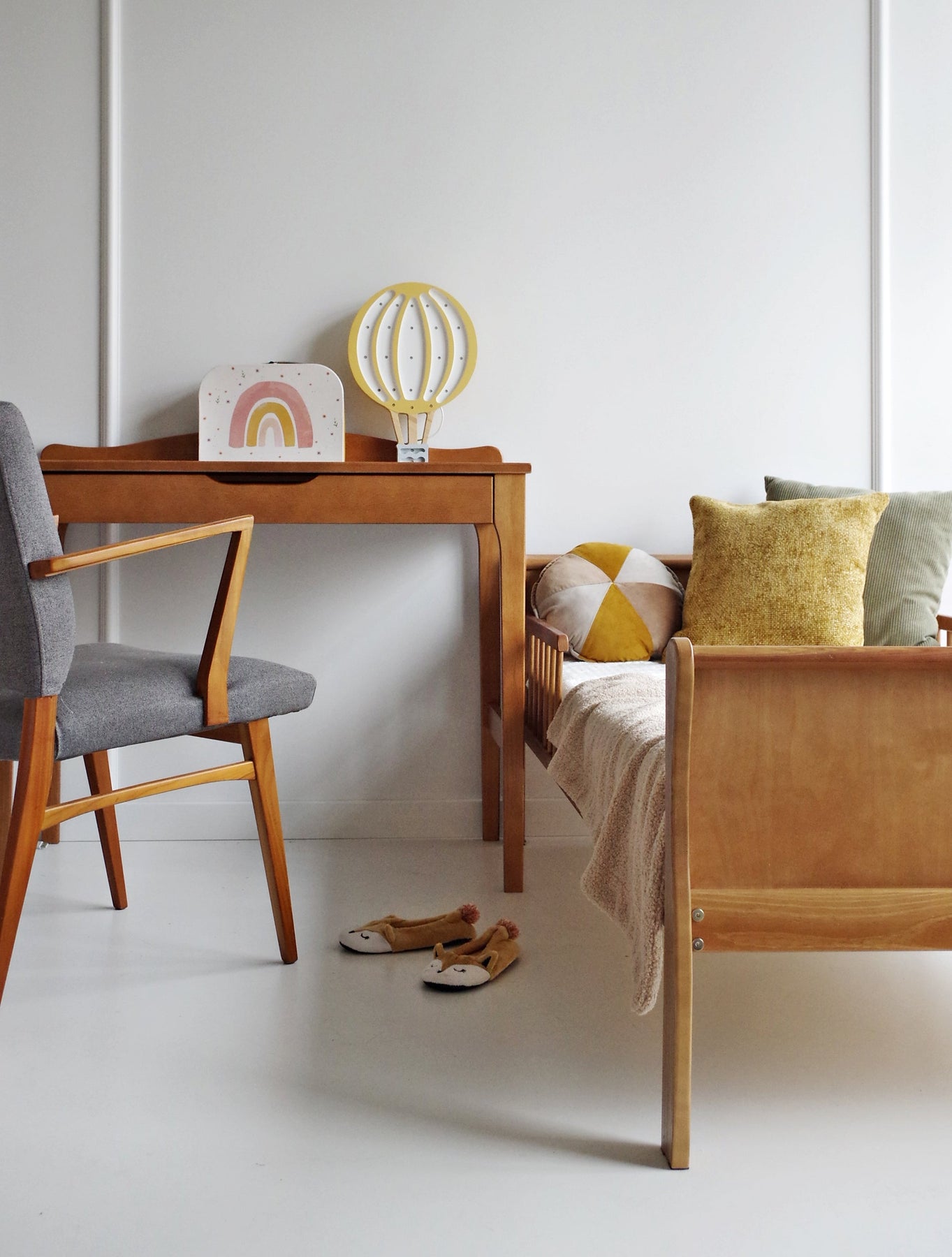 Ein bezaubernder Kinderschreibtisch, der warmen Vintage‑Charme mit praktischer Funktionalität verbindet. Der Woodies Noble Schreibtisch bietet Massivholz‑Qualität, eine geräumige Schublade und sanfte Kurven, die sich in jedem Baby‑ oder Kinderzimmer sofort heimisch anfühlen - ideal für frühes Lernen, kreatives Gestalten und fantasievolles Spiel.