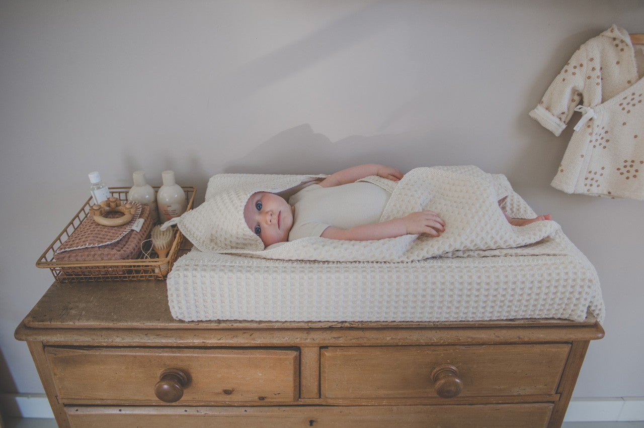 Rendez chaque change plus doux et serein avec la housse pour matelas à langer Koeka Amsterdam. Le coton gaufré emblématique, associé à une doublure en éponge délicate, enveloppe bébé d’un confort chaleureux et apporte une touche raffinée à la chambre.