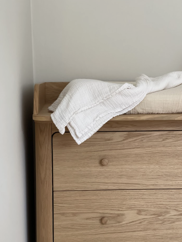 Des premiers jours aux routines quotidiennes, cette unité à langer apporte de la sérénité aux moments les plus intenses. Sa finition en chêne raffinée complète le mobilier de la chambre contemporaine, pour une harmonie visuelle tout en gardant les essentiels du change à portée de main.
